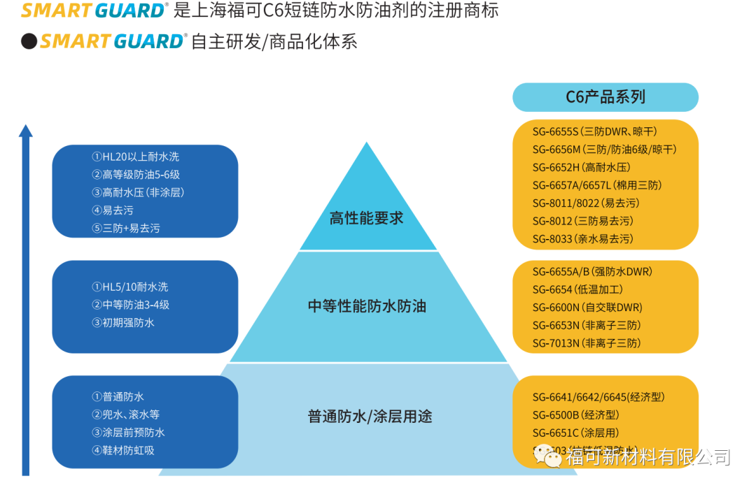 福可新資料(上海)無限公司是一家專一于環保型防水防油劑(C6和無氟)研發、利用、出產的立異型企業。由在防水防油劑范疇從業近14年的行業資深人士創建。創建之初,行將“國產環保型防水防油劑帶領者”作為斗爭方針。